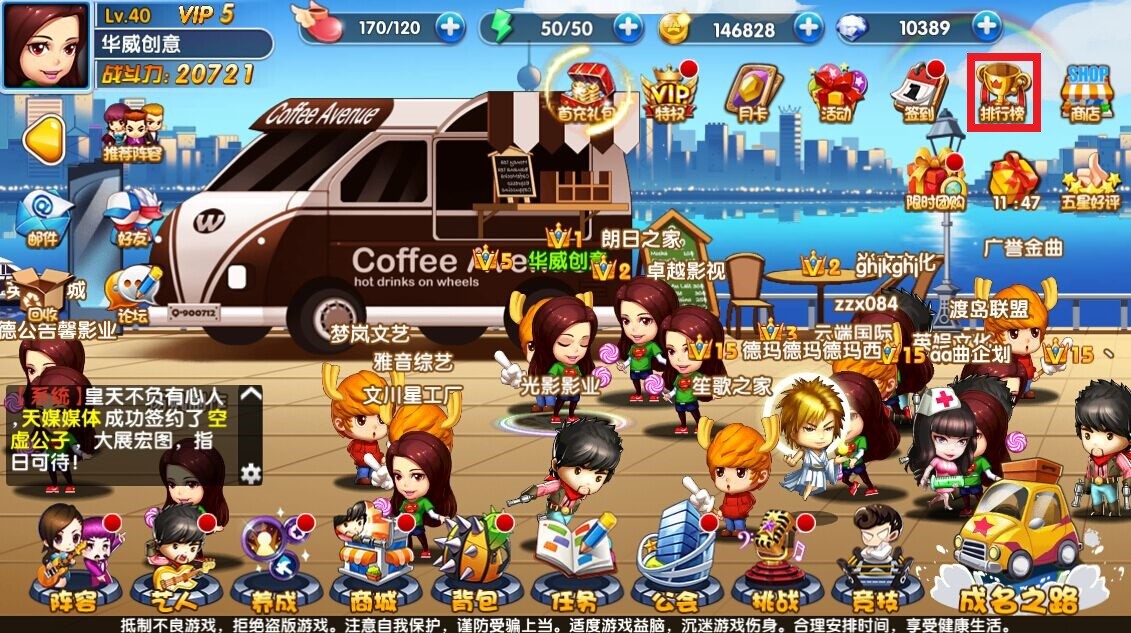点击主界面“排行榜”按钮,可以进入排行榜界面。